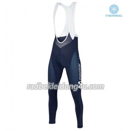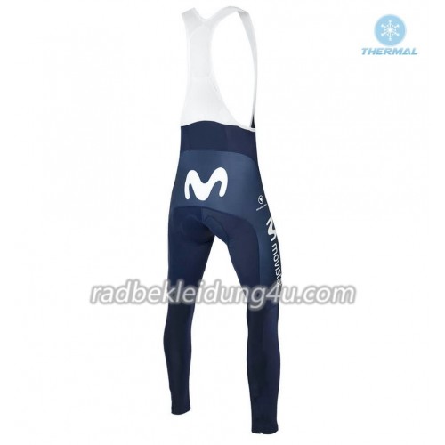 Set Langarmtrikot + Trägerhose Lange 2018 Movistar Team Winter Thermal Fleece N001
